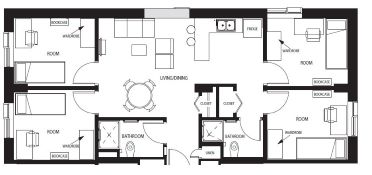 Shared Lounges & Kitchenettes: Relax in lounges with Eastlink Stream TV or prepare light meals in kitchenettes (please note kitchenettes are not stocked with cookware or utensils).